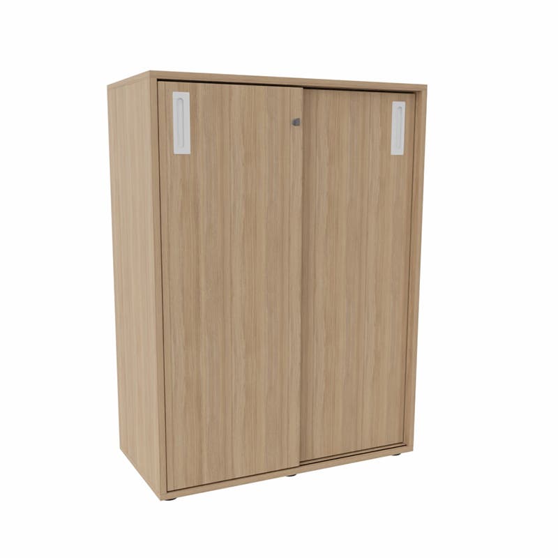 Skjutdörrskåp Sense, 3 plan, B800 x D400 x H1095 mm, Ek Amber laminat