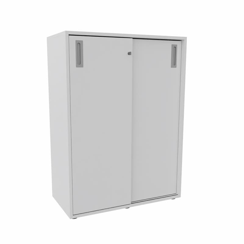 Skjutdörrskåp Sense, 3 plan, B800 x D400 x H1095 mm, Vit laminat