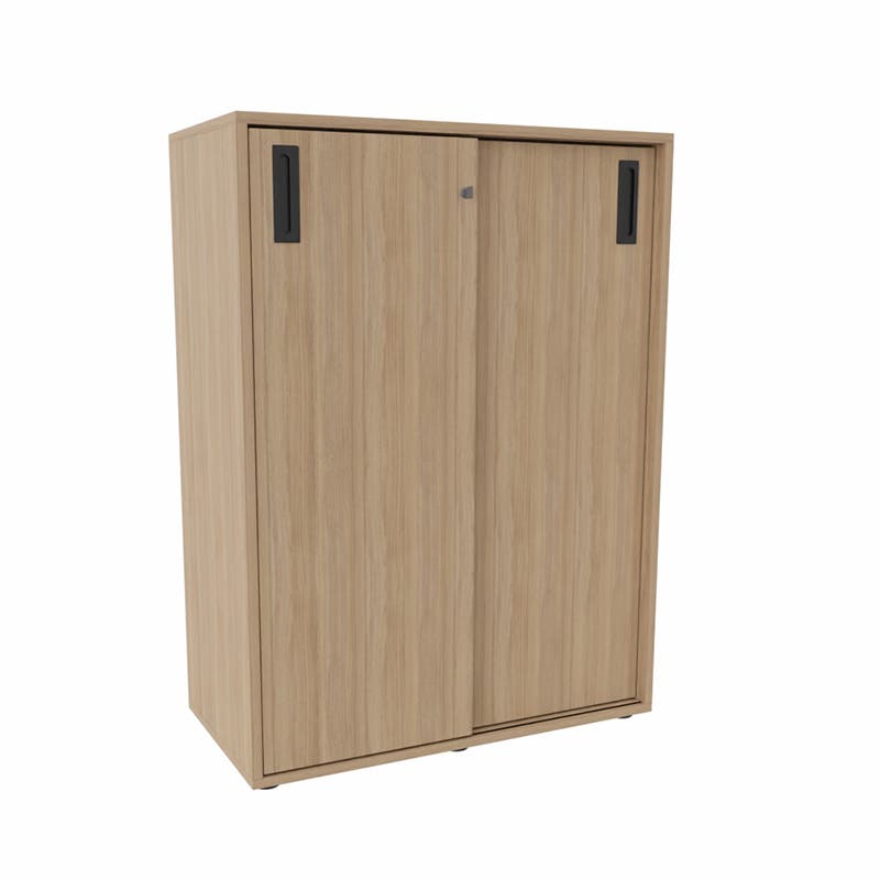 Skjutdörrskåp Sense, 3 plan, B800 x D400 x H1095 mm, Ek Amber laminat