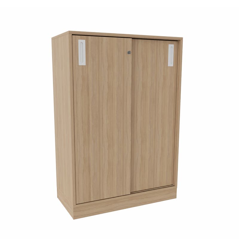 Skjutdörrskåp Sense, 3 plan, B800 x D400 x H1155 mm, Ek Amber laminat