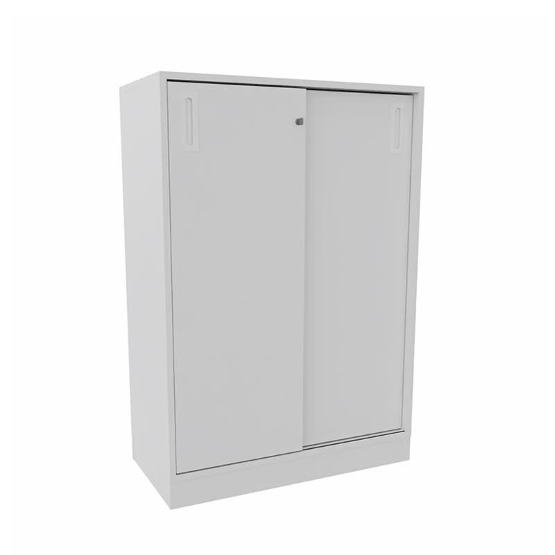 Skjutdörrskåp Sense med 3 plan. Med ett skjutdörrskåp optimerar du tillgängligheten och slipper ha öppna dörrar som är i vägen. Låsbart, infällda handtag.