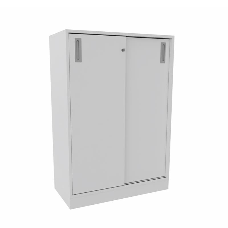 Skjutdörrskåp Sense med 3 plan. Med ett skjutdörrskåp optimerar du tillgängligheten och slipper ha öppna dörrar som är i vägen. Låsbart, infällda handtag.