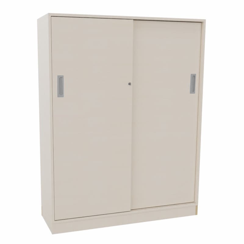 Skjutdörrskåp Sense med 4 plan. Med ett skjutdörrskåp optimerar du tillgängligheten och slipper ha öppna dörrar som är i vägen. Låsbart, infällda handtag.