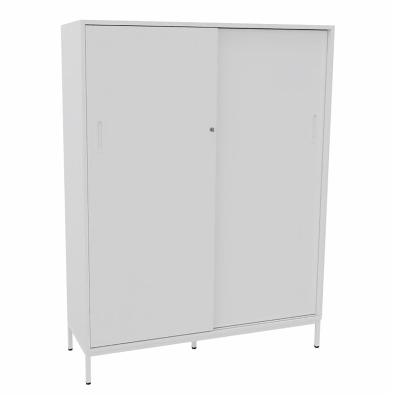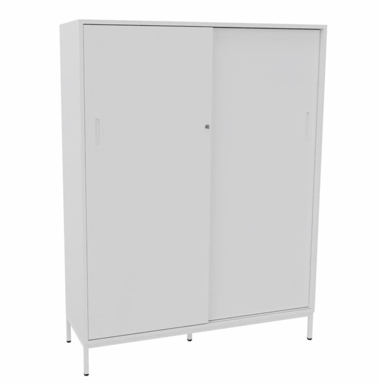 Skjutdörrskåp Sense med 4 plan. Med ett skjutdörrskåp optimerar du tillgängligheten och slipper ha öppna dörrar som är i vägen. Låsbart, infällda handtag.