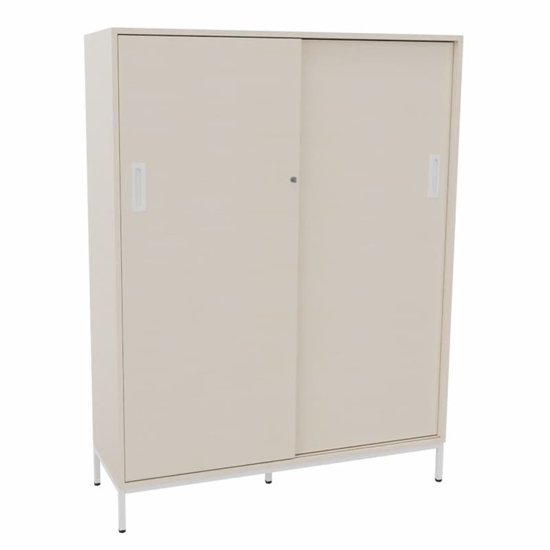 Skjutdörrskåp Sense med 4 plan. Med ett skjutdörrskåp optimerar du tillgängligheten och slipper ha öppna dörrar som är i vägen. Låsbart, infällda handtag.
