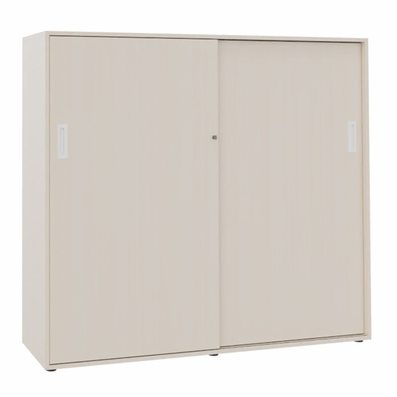 Skjutdörrskåp Sense, 4 plan, B1600 x D400 x H1445 mm, Björk laminat