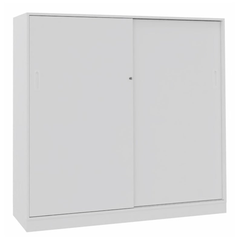 Skjutdörrskåp Sense med 4 plan. Med ett skjutdörrskåp optimerar du tillgängligheten och slipper ha öppna dörrar som är i vägen. Låsbart, infällda handtag.