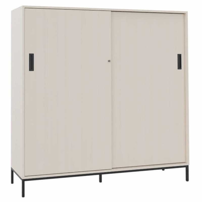 Skjutdörrskåp Sense med 4 plan. Med ett skjutdörrskåp optimerar du tillgängligheten och slipper ha öppna dörrar som är i vägen. Låsbart, infällda handtag.