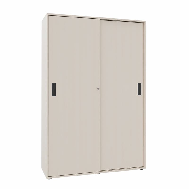 Skjutdörrskåp Sense med 5 plan. Med ett skjutdörrskåp optimerar du tillgängligheten och slipper ha öppna dörrar som är i vägen. Låsbart, infällda handtag.