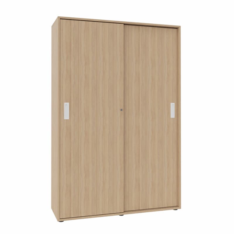 Skjutdörrskåp Sense, 5 plan, B1200 x D400 x H1800 mm, Ek Amber laminat