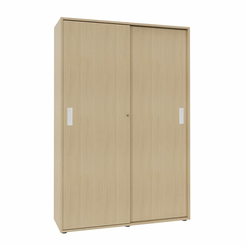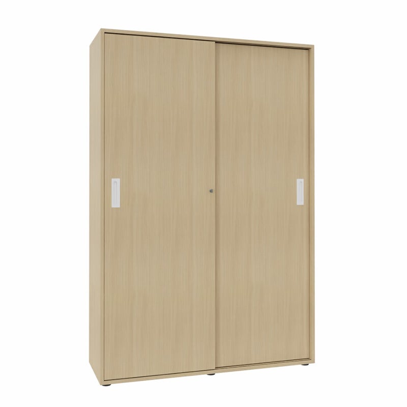Skjutdörrskåp Sense, 5 plan, B1200 x D400 x H1800 mm, Laminat vitpigmenterad Ek