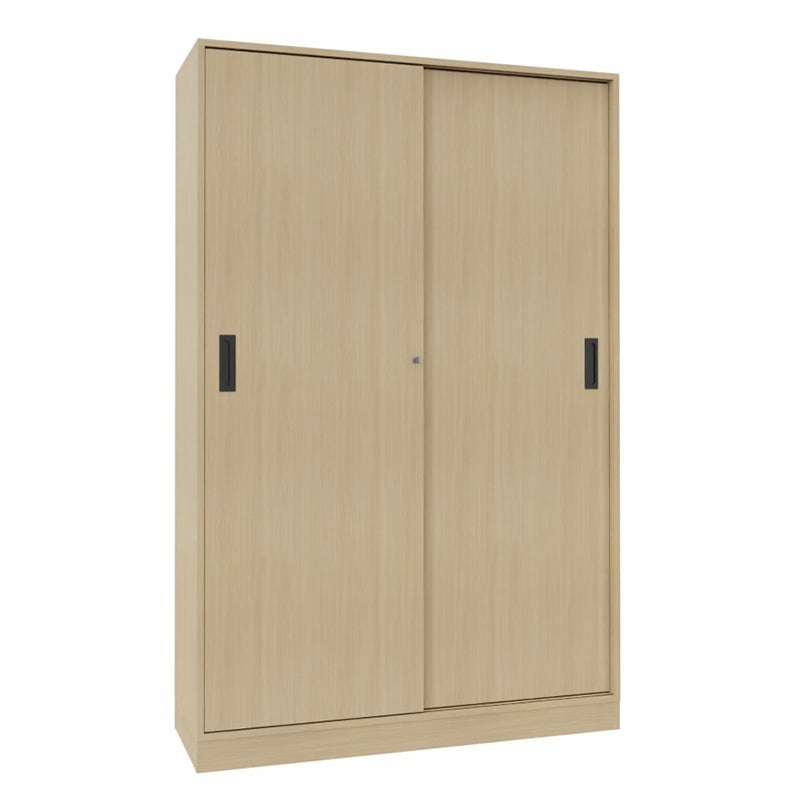 Skjutdörrskåp Sense, 5 plan, B1200 x D400 x H1860 mm, Laminat vitpigmenterad Ek