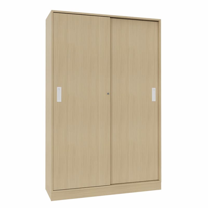 Skjutdörrskåp Sense, 5 plan, B1200 x D400 x H1860 mm, Laminat vitpigmenterad Ek