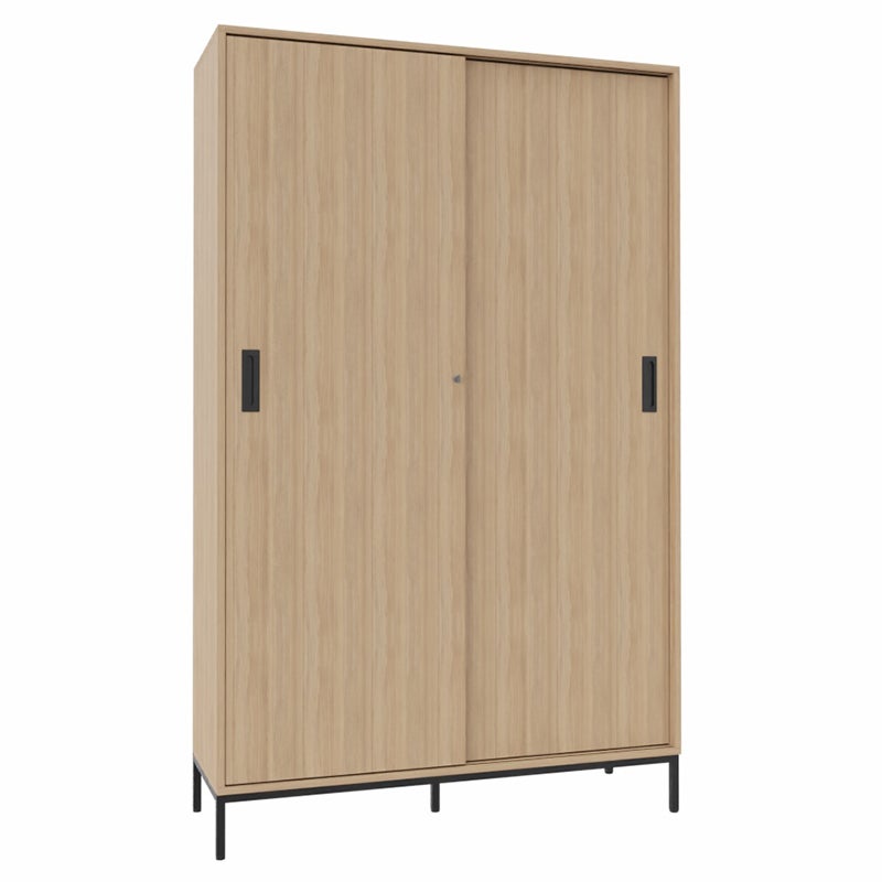 Skjutdörrskåp Sense, 5 plan, B1200 x D400 x H1930 mm, Ek Amber laminat