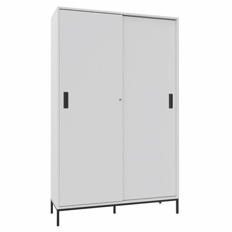 Skjutdörrskåp Sense med 5 plan. Med ett skjutdörrskåp optimerar du tillgängligheten och slipper ha öppna dörrar som är i vägen. Låsbart, infällda handtag.