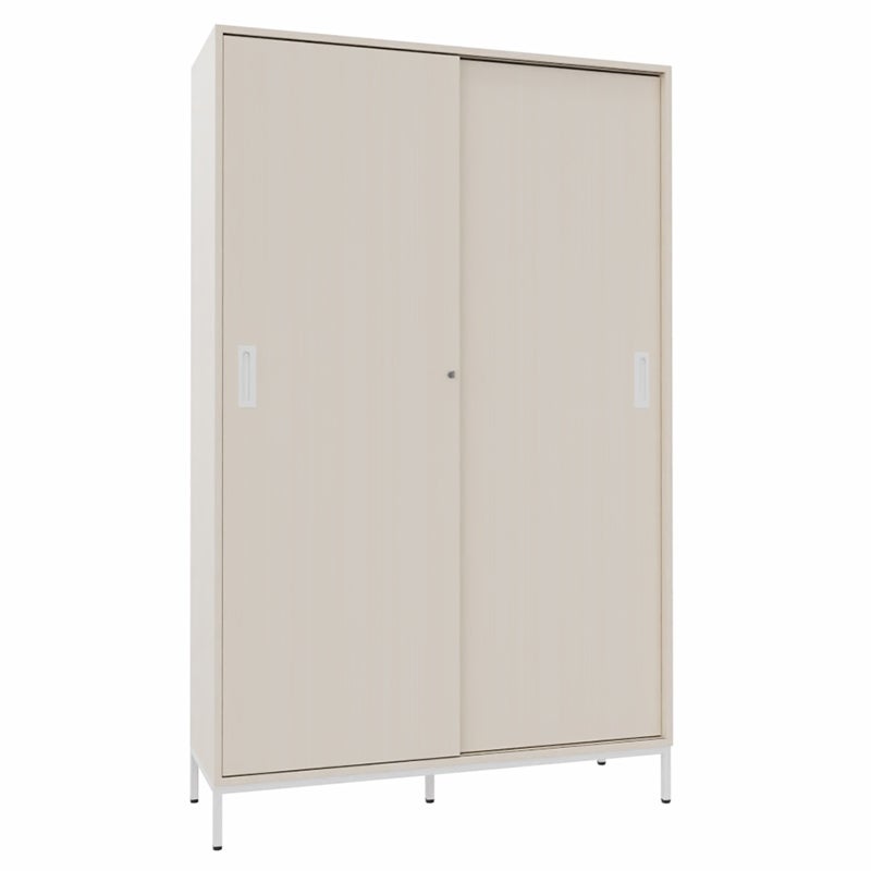 Skjutdörrskåp Sense med 5 plan. Med ett skjutdörrskåp optimerar du tillgängligheten och slipper ha öppna dörrar som är i vägen. Låsbart, infällda handtag.