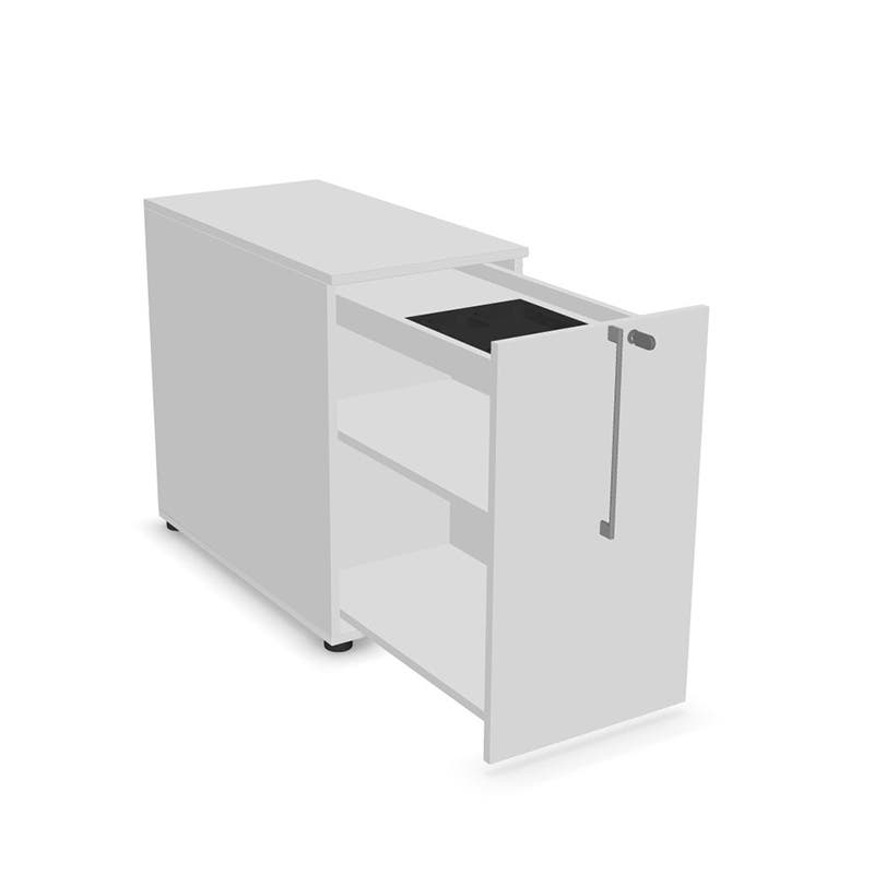 Som standard låsbart och inrett med två hyllplan samt praktisk pennhylla/småförvaring. Specifka önskelmål går att uppfylla, såsom usb-laddare, lådförvaring, hängmappssystem etc. Hör då av dig till någon av våra säljare så hjälper de till att utforma skåpet efter dessa önskemål.