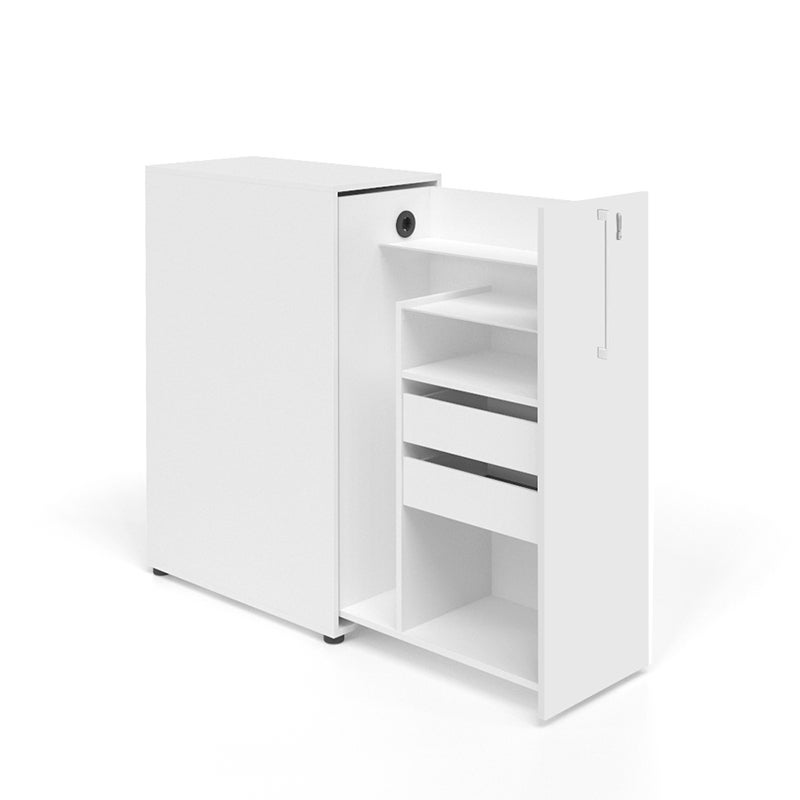 Towerskåp Sense, hyllplan, lådhurts, 220 V ladduttag, B420 x D800 x H1200 mm, Vit laminat, Höger