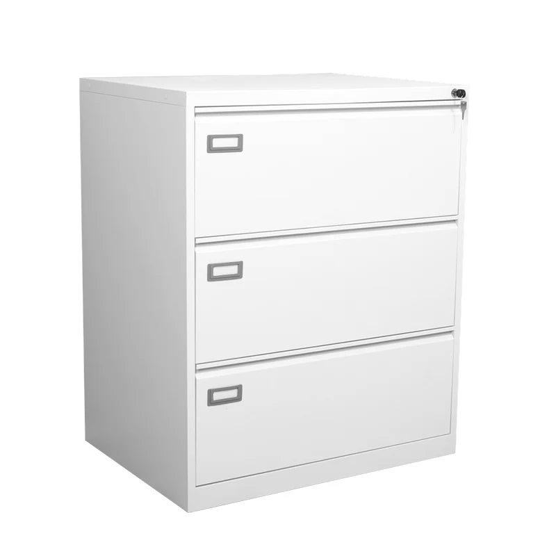 Flankmappskåp i plåt med 3 st lådor, A4-format, H1022xB840xD620 mm, centrallås