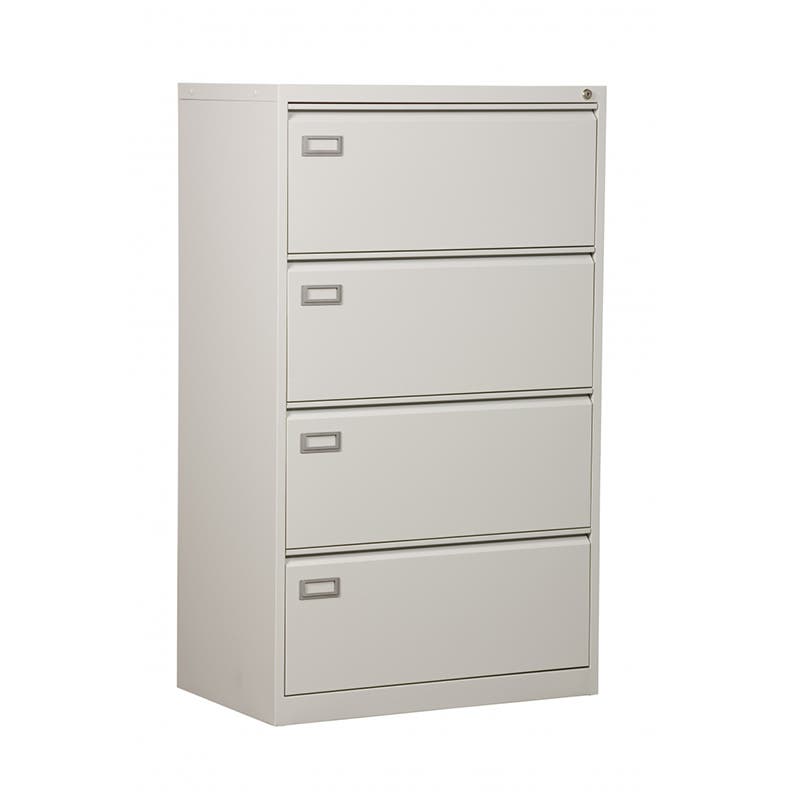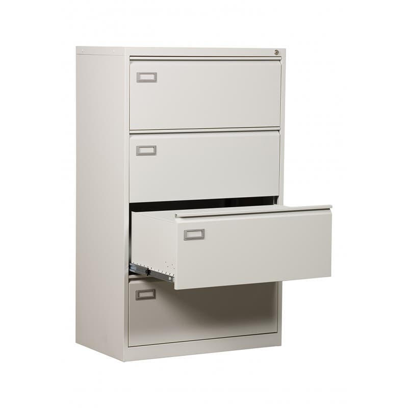 Flankmappskåp i plåt med 4 st lådor, A4-format, H1328xB840xD620 mm, centrallås