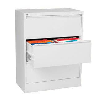 Svensktillverkat 3-lådigt flankskåp med hög kvalitet och finish. Skåpet har centrallås och vippsäkring. Mått B:802 x D:425 x H:1032. Skåpet finns i färgerna vit (NCS 0502B) eller ljusgrå (RAL 7035). Som tillbehör finns hängmappar. I skåpserien finns även flankskåp med två eller fyra lådor, samt enkla mappskåp.