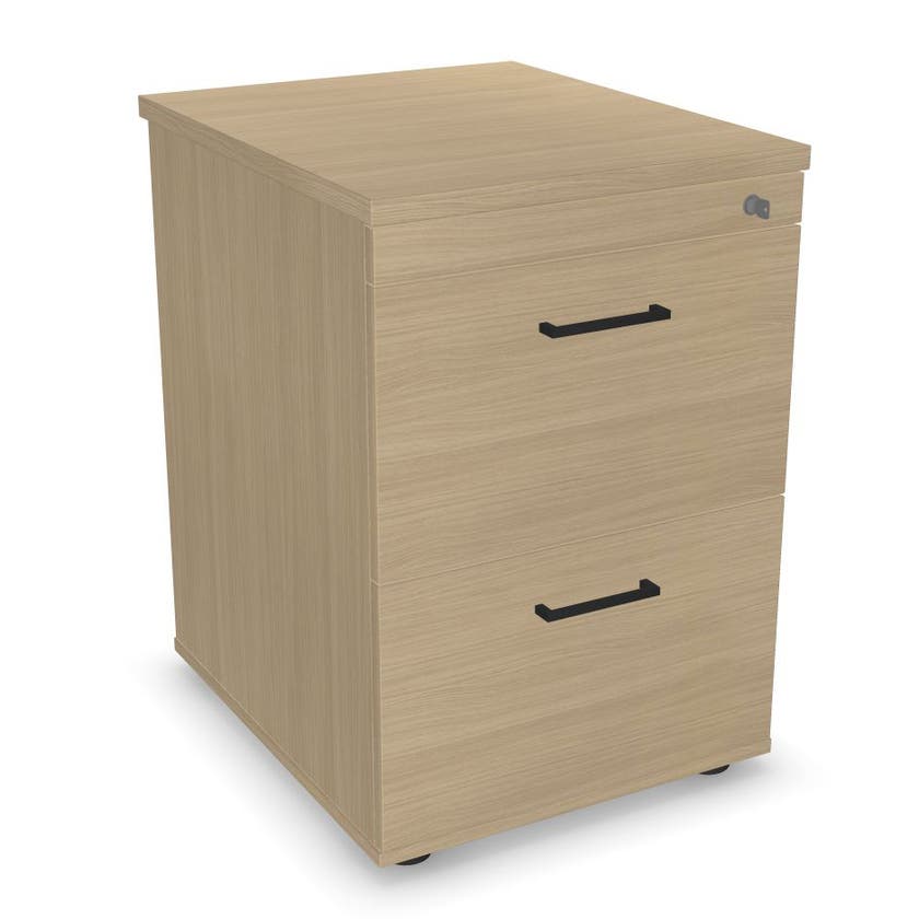 Mappskåp Sense, 2-lådig, centrallås, B500 x D600 x H720 mm, Laminat vitpigmenterad Ek