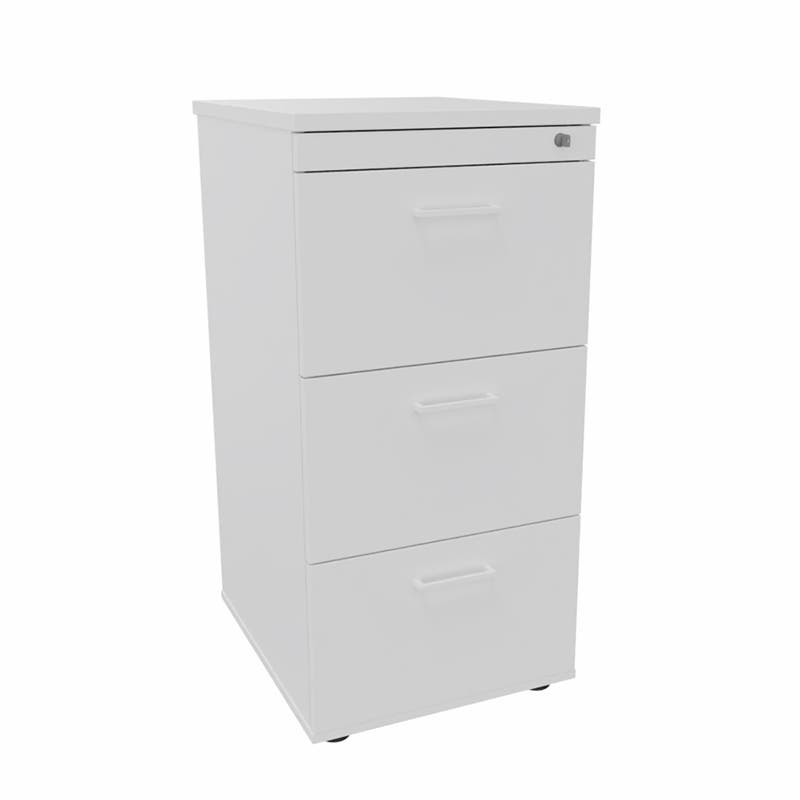 Mappskåp Sense, 3-lådig, centrallås, B500 x D600 x H1020 mm, Vit laminat