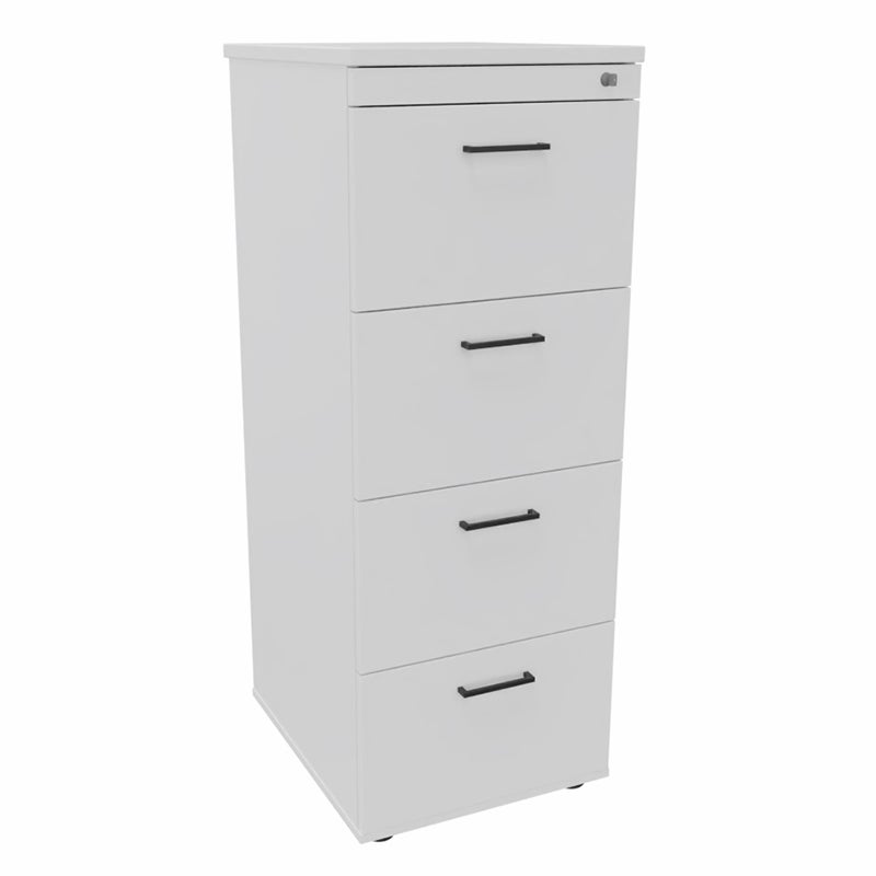 Mappskåp Sense, 4-lådig, centrallås, B500 x D600 x H1320 mm, Vit laminat