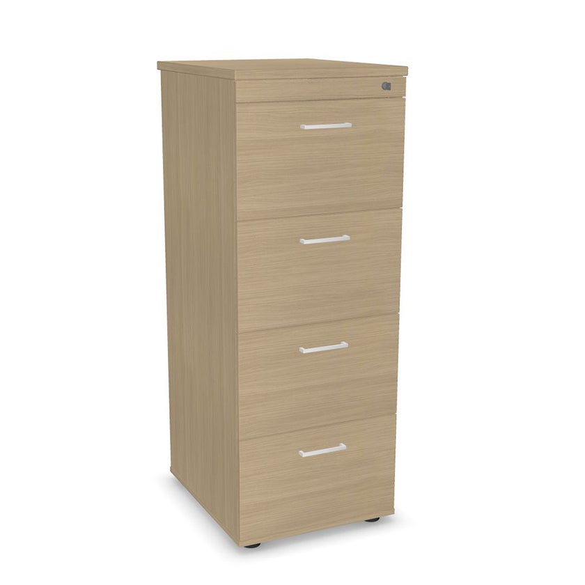 Mappskåp Sense, 4-lådig, centrallås, B500 x D600 x H1320 mm, Laminat vitpigmenterad Ek