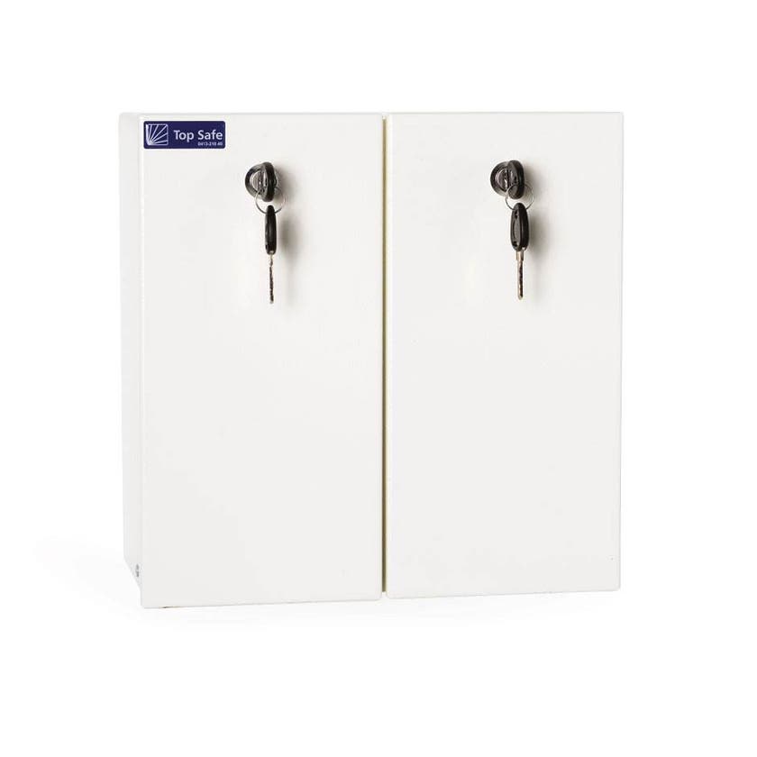 Alicia är ett 2-facks medicinskåp med omaka cylinderlås, tillverkat i 1,25 stålplåt. Ett populärt alternativ inom hälso och sjukvård, dels beroende på den stöldfördröjande effekten, men också för att det ökar säkerheten vid tilldelning av medin. Kommer med 4 st flyttbara hyllpan. Skåpet är förberett för bultning i botten samt upphängning på vägg. Levereras med 2 st nyckllar/fack. Vid förfrågan finns möjlighet att få Alicia med elektroniskt eller mekaniskt kodlås.