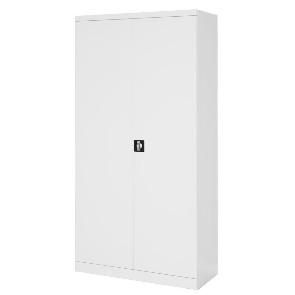 Kontor/förvaringsskåp i plåt för kontor och förvaltningar till förvaring av pärmar, papper och annat arkivmaterial. Passar även för verkstad till lättare material som instrument, dokument mm. Skåpet har infällt handtag med dolt spanjolettlås. Lackerat i vit eller grå färg. Levereras monterat.