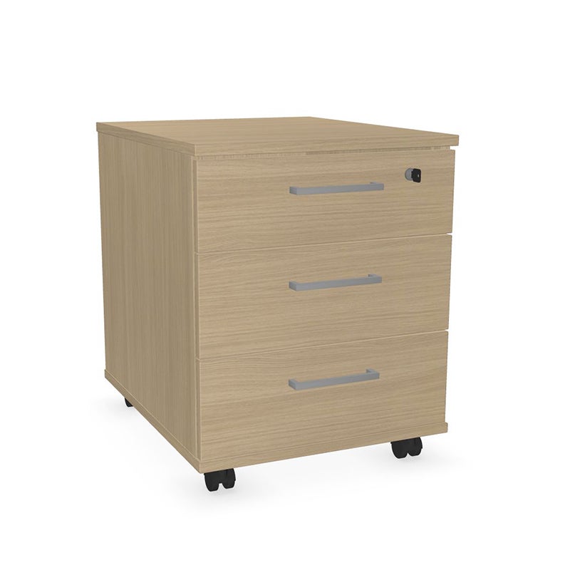 Rullhurts Sense, 3-lådig, centrallås, B415 x D500 x H510 mm, Laminat vitpigmenterad Ek