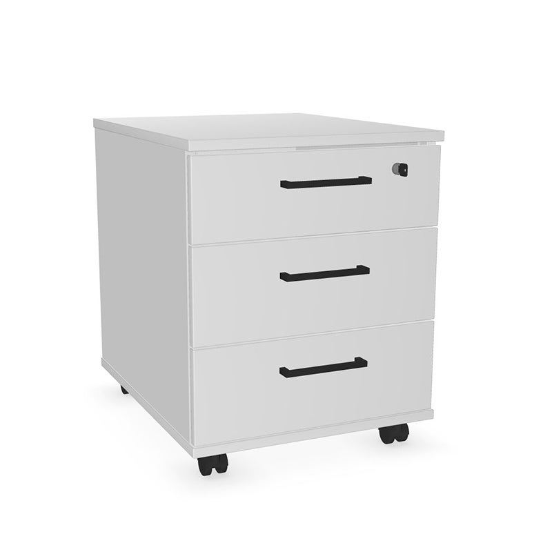 Rullhurts Sense, 3-lådig, centrallås, B415 x D500 x H510 mm, Vit laminat