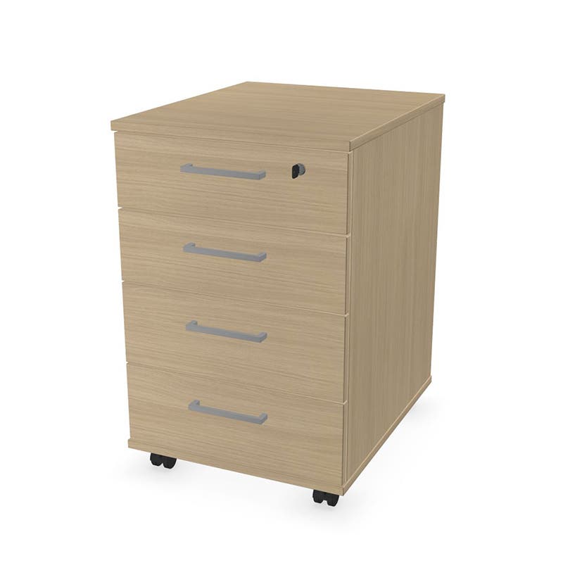 Rullhurts Sense, 4-lådig, centrallås, B415 x D500 x H638 mm, Laminat vitpigmenterad Ek