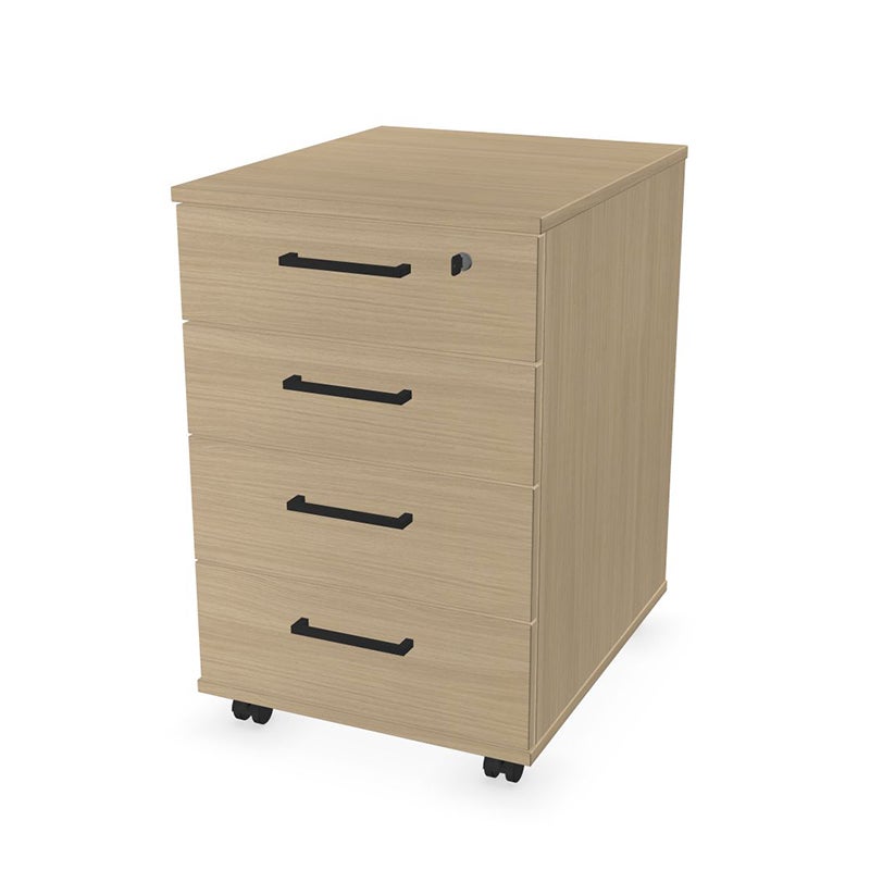 Rullhurts Sense, 4-lådig, centrallås, B415 x D500 x H638 mm, Laminat vitpigmenterad Ek