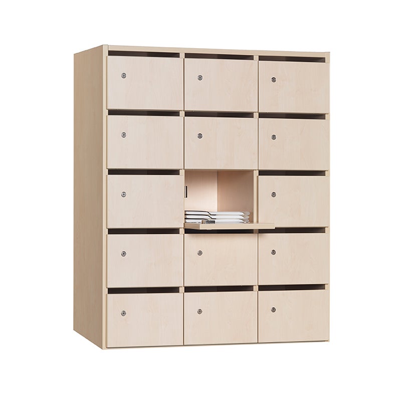 Postsorteringsfack Hjortsjö, 15 st låsbara fack, 860x420x1014 mm, för väggmontage