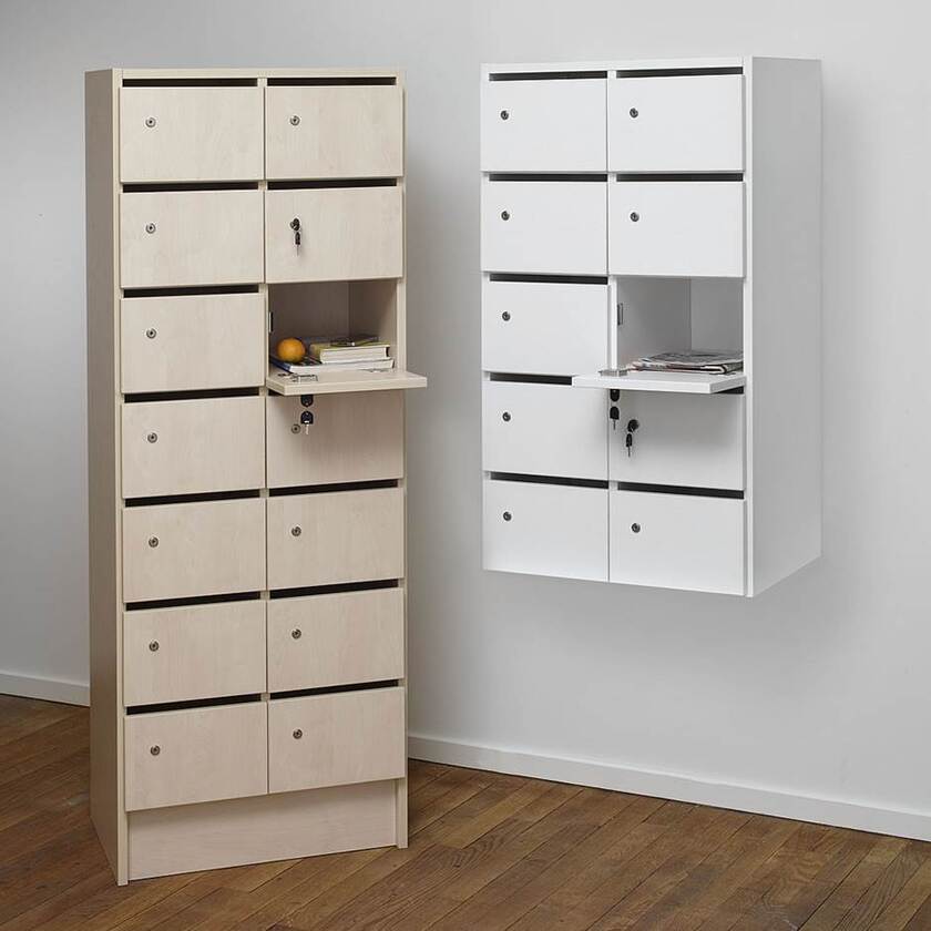 Praktiskt postsorteringsfack för placering på golv, tillverkat i bok-, björk- eller vit laminat.