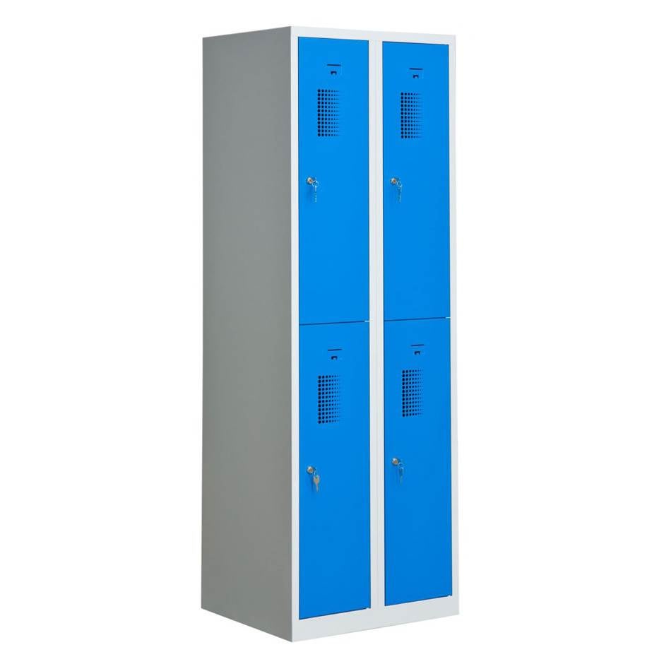 Förvaringsskåp, 2x2 st fack, 600x500x1800 mm, cylinderlås, lackerat
