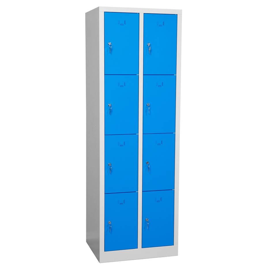 Förvaringsskåp, 2x4 st fack, 600x500x1800 mm, cylinderlås, lackerat