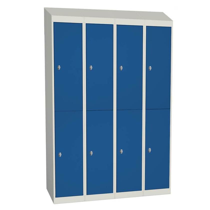 Småfackskåp Esko går att få med två olika varianter på tak. Du kan välja mellan plant tak, som är praktiskt i vissa fall, eller sluttande tak för att förhindra att obehöriga saker placeras uppe på skåpet. Skåp med sluttande tak kan även förses med uttag för ventilation, som då kopplas mot ett centralt ventilationssystem.