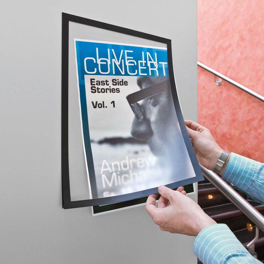 Självhäftande och smidig magnetram i A3-format. Magnetramen är ett enkelt sätt att skapa attraktiva och lätt utbytbara budskap på olika ytor. Placera den självhäftande baksidan på dörrar, fönster, bildskärmar, väggar etc. Öppningsbar framsida gör det enkelt att byta innehåll och klistret lämnar inga märken. Transparent framsida av tålig plast. Baksidan är transparent och självhäftande av något mjukare plast med klister. Magnetkanten finns i silvergrå eller svart färg.