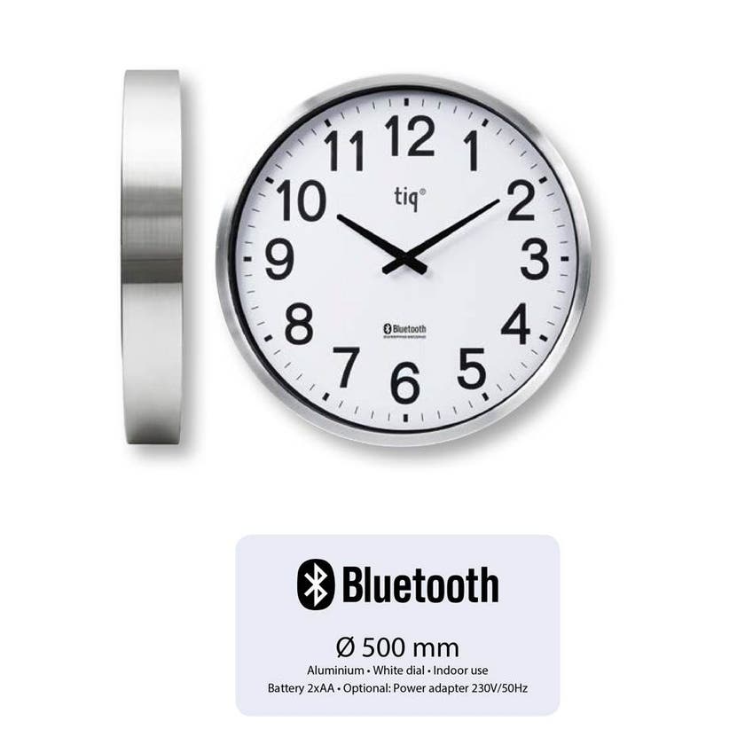 Bluetoothkontrollerat väggur, diam. 500 mm, siffervisning, aluminiumram
