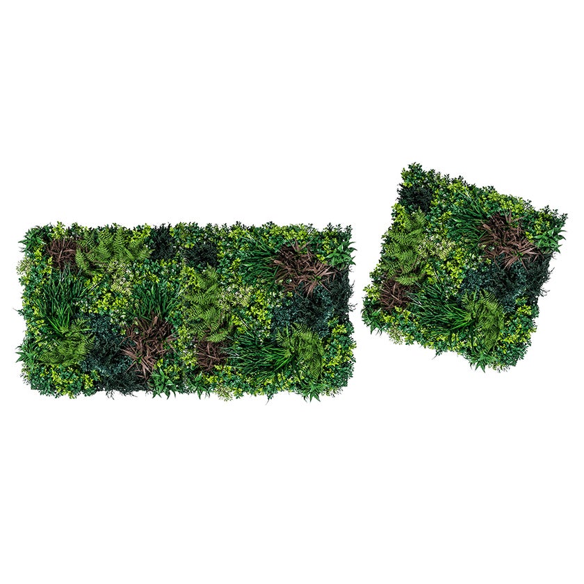 Med växtvägg Premium integrerar du den nordiska grönskan i din vägg. Detta paket består av tre paneler, där varje panel har måttet 800 x 800 mm och är sammansatt av 85 växter av olika sorter. Växtväggen passar i alla miljöer och är utmärkta lösningar i exempelvis rum med högt till tak, trånga utrymmen eller platser där det annars är svårt med skötsel, ljus och bevattning som levande växter kräver. Växtväggen är både UV-säker och flamskyddad, underhållsfri och har en mycket lång livslängd.