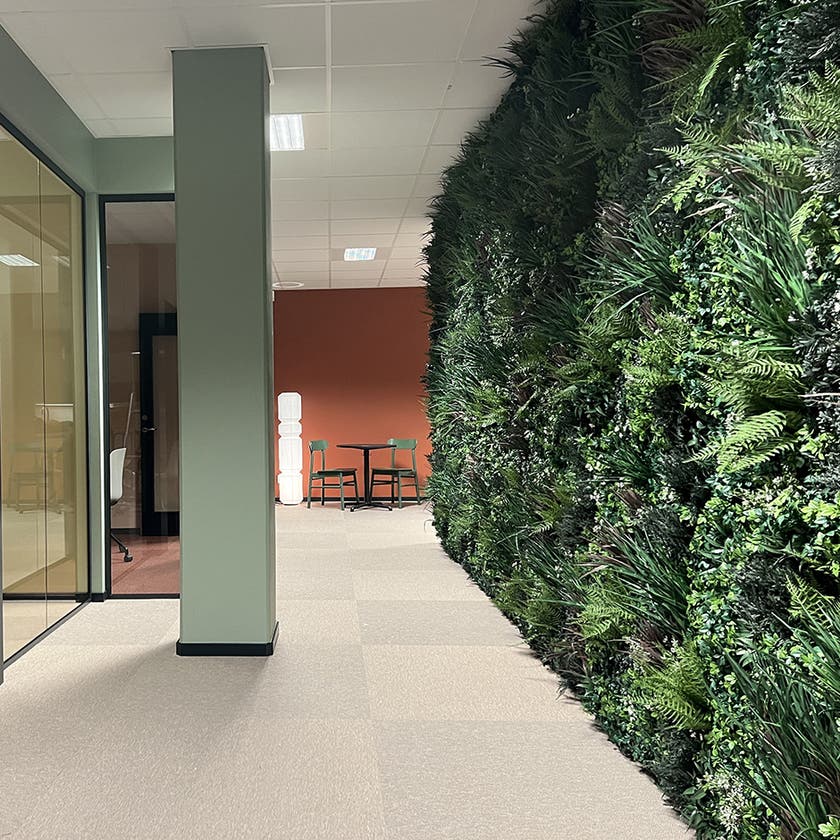 Med växtvägg Premium integrerar du den nordiska grönskan i din vägg. Panelen har måttet 800 x 800 mm och är sammansatt av 85 växter av olika sorter. Växtväggen passar i alla miljöer och är utmärkta lösningar i exempelvis rum med högt till tak, trånga utrymmen eller platser där det annars är svårt med skötsel, ljus och bevattning som levande växter kräver. Växtväggen är både UV-säker och flamskyddad, underhållsfri och har en mycket lång livslängd.