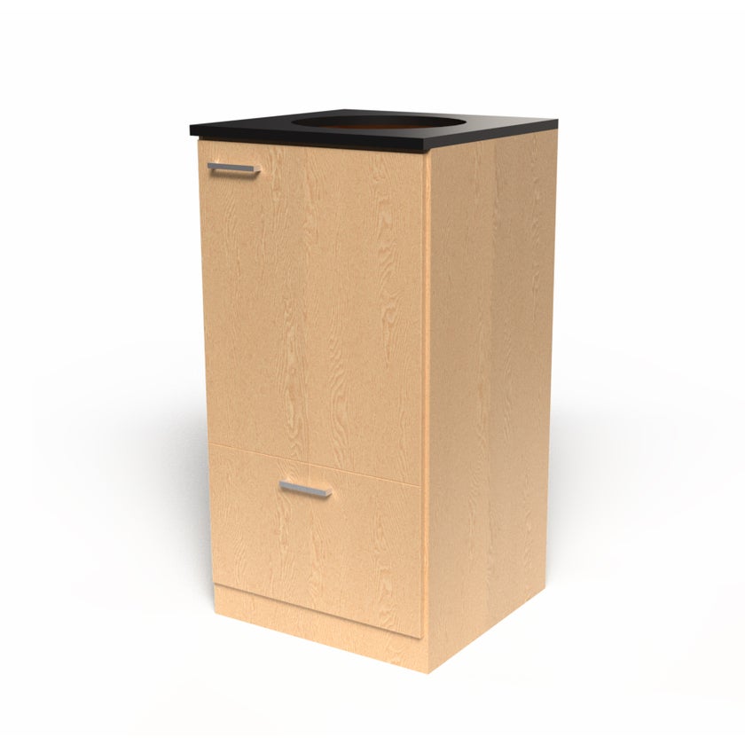 Miljödisk 3 fraktioner, 90 liters kärl med toppmatning, frontlucka, 2 st 25 liters kärl i låda med täckt lådfront, Bok
