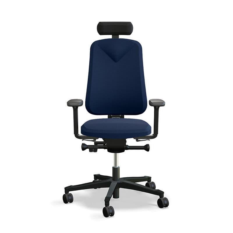 Arbetsstol Höganäs 280 Small med hög rygg och 4D armstöd och nackstöd äkta läder, stor ställbarhet, tyg Select
