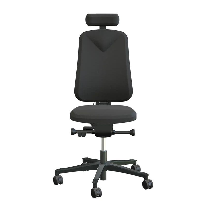 Arbetsstol Höganäs 280 Small med hög rygg, stor ställbarhet, Nackstöd svart läder, tyg Fame