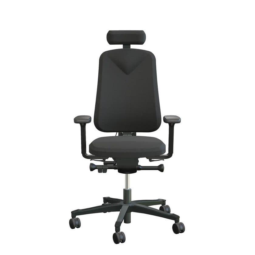 Arbetsstol Höganäs 290 Large med hög rygg och 4D armstöd och nackstöd konstläder, stor ställbarhet, tyg Xtreme