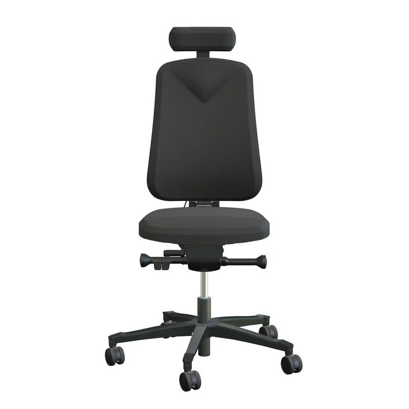 Arbetsstol Höganäs 290 Large med hög rygg, stor ställbarhet, Nackstöd svart läder, tyg Fame