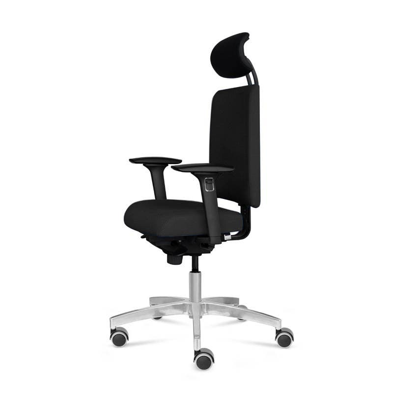 Arbetsstol Infra A, låg rygg, liten sits, 4D armstöd och nackstöd av konstläder, stor ställbarhet, tyg Select